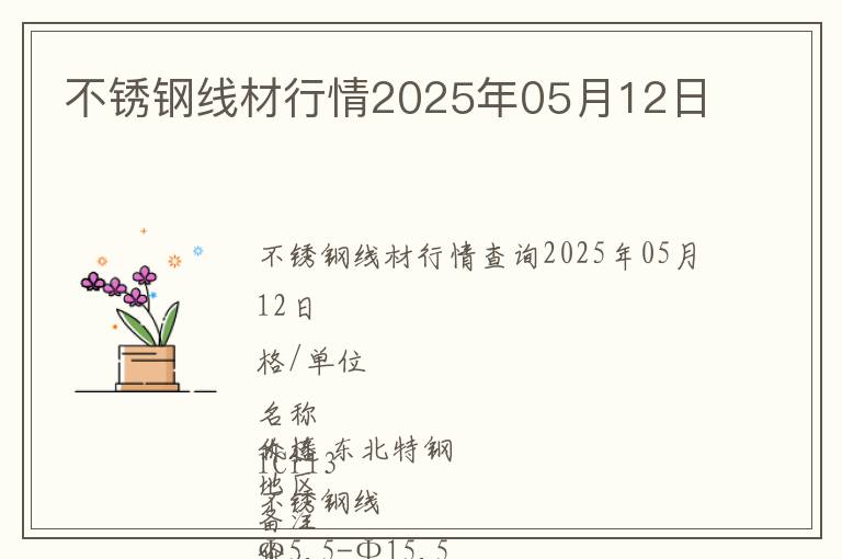 | 不銹鋼線材行情查詢2025年05月12日 |