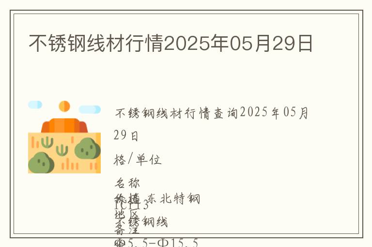 | 不銹鋼線材行情查詢2025年05月29日 |